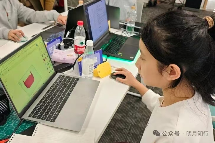 从第一张AI辅助设计的队徽,到明月湖畔追逐飞盘的身影;从第一次拉伸出三维名牌的惊喜,到机械工程师们伏案设计的匠心。孩子们在操控中寻找平衡,在协作中定义自我,在失败与尝试间,悄然完成了从观察者向创造者的蜕变。